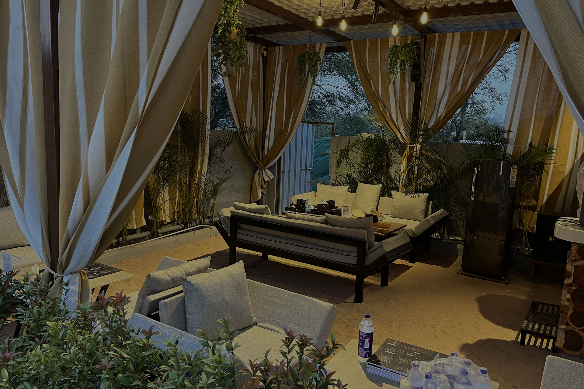 Earthy interiors designed with wood and sand elements for a calm, relaxing experience.